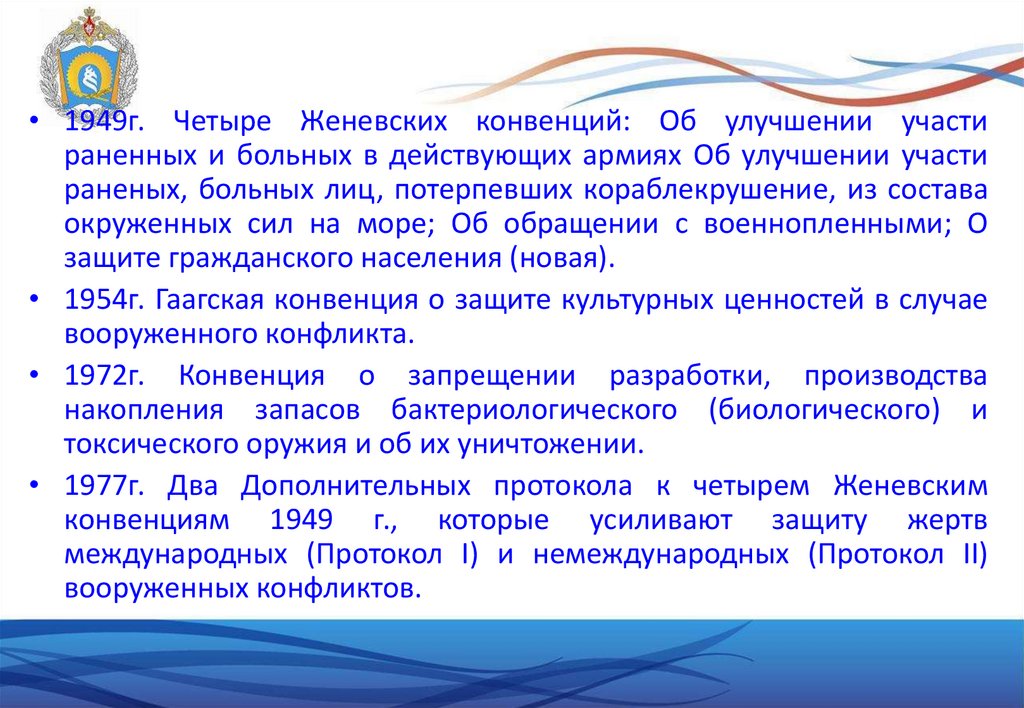 в Гаагских Конвенциях, Женевских Конвенциях о защите жертв войны1949 г.