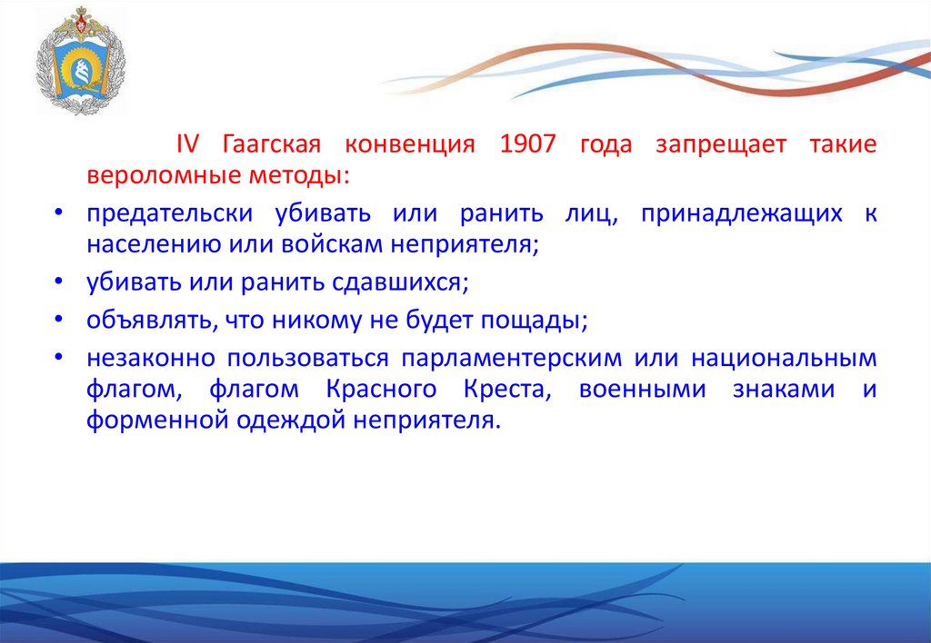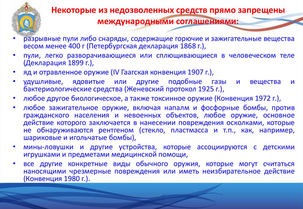 29. Некоторые из недозволенных средств прямо запрещены международными соглашениями: