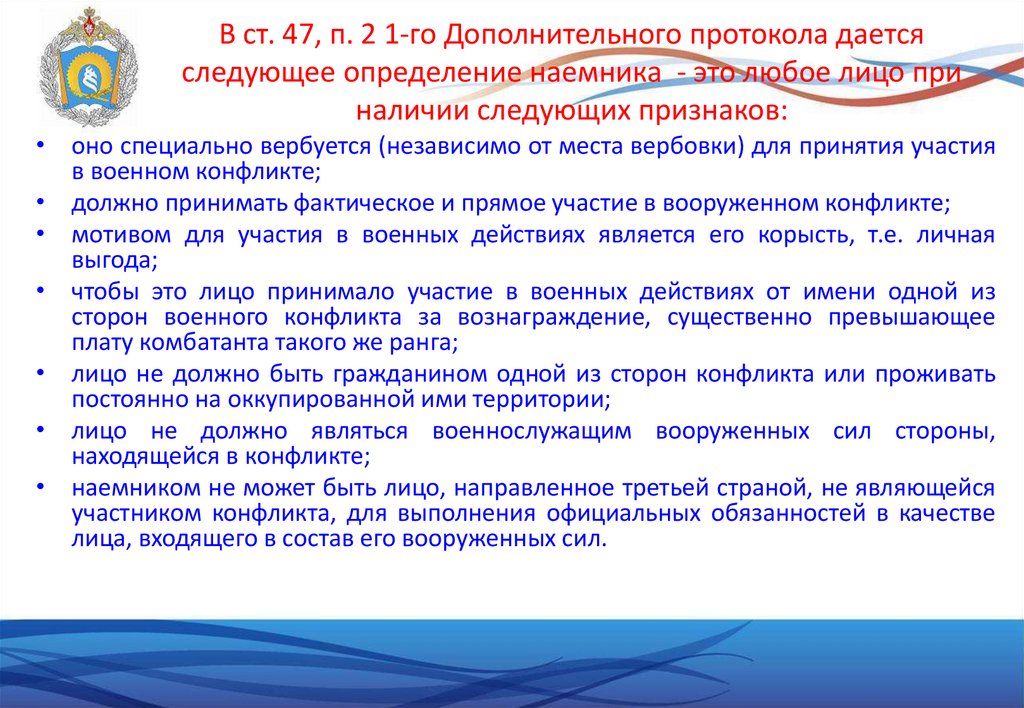 • наемником не может быть лицо, направленное третьей страной, не являющейся