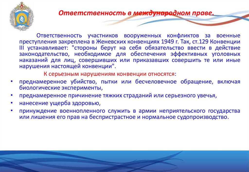 преступления закреплена в Женевских конвенциях 1949 г. Так, ст.129 Конвенции