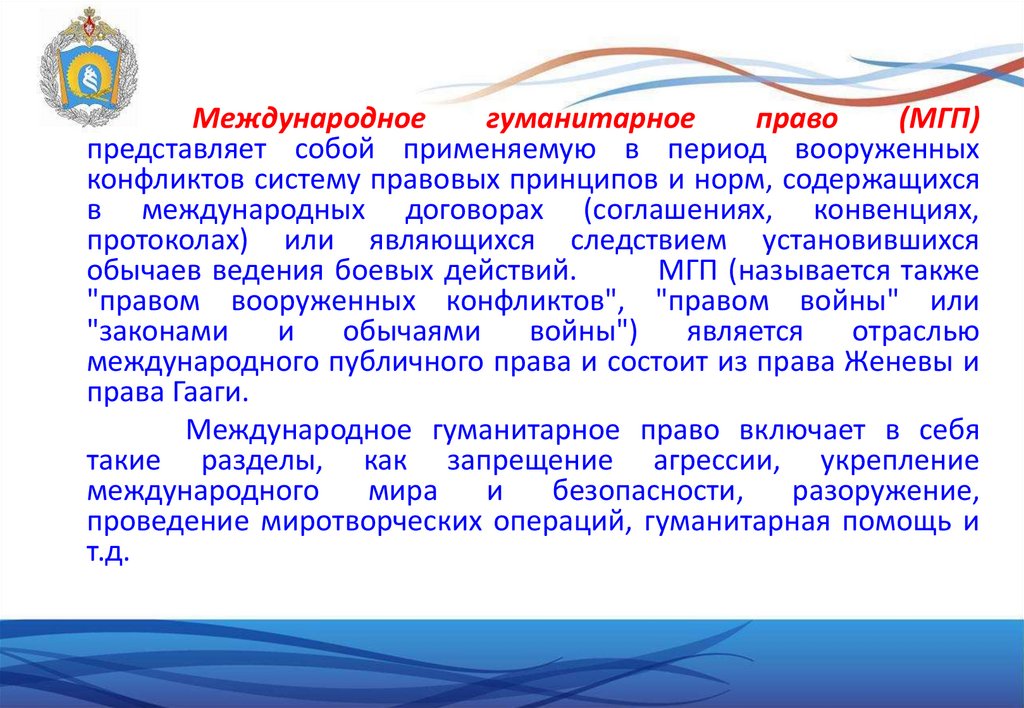 гуманитарным правом, распространяются и на вооружённые конфликты