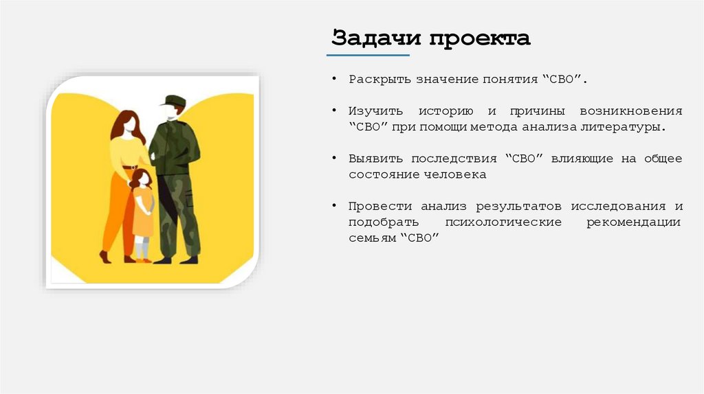 Задачи проекта• Раскрыть значение понятия “СВО”.