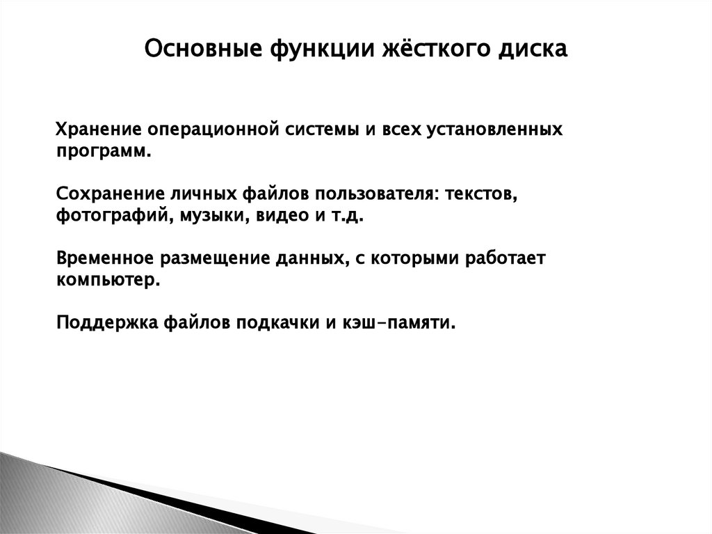 Основные функции жёсткого дискаХранение операционной системы и всех установленных