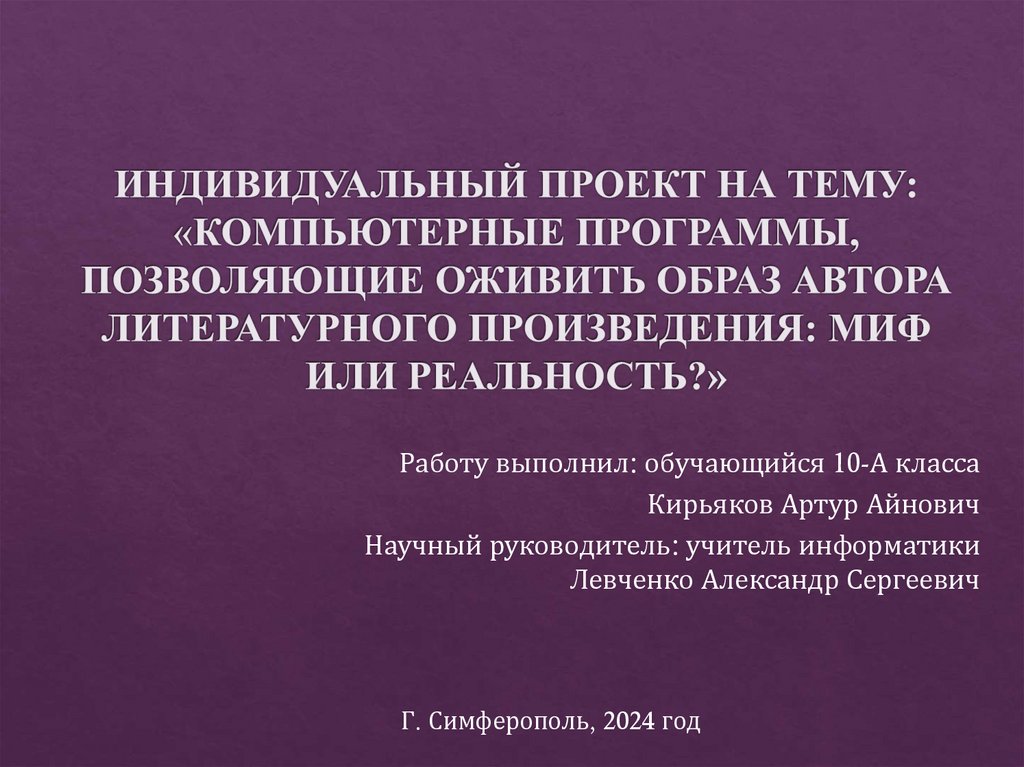 1. ИНДИВИДУАЛЬНЫЙ ПРОЕКТ НА ТЕМУ: «КОМПЬЮТЕРНЫЕ ПРОГРАММЫ, ПОЗВОЛЯЮЩИЕ ОЖИВИТЬ ОБРАЗ АВТОРА ЛИТЕРАТУРНОГО ПРОИЗВЕДЕНИЯ: МИФ ИЛИ