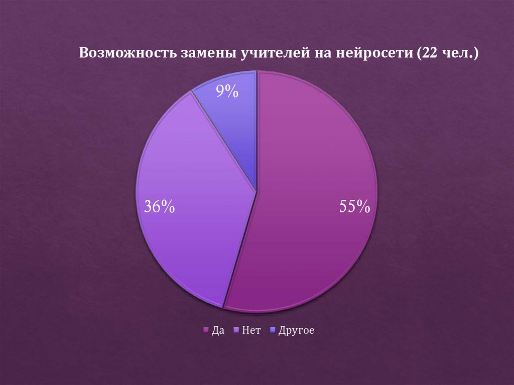 Возможность замены учителей на нейросети (22 чел.)9%