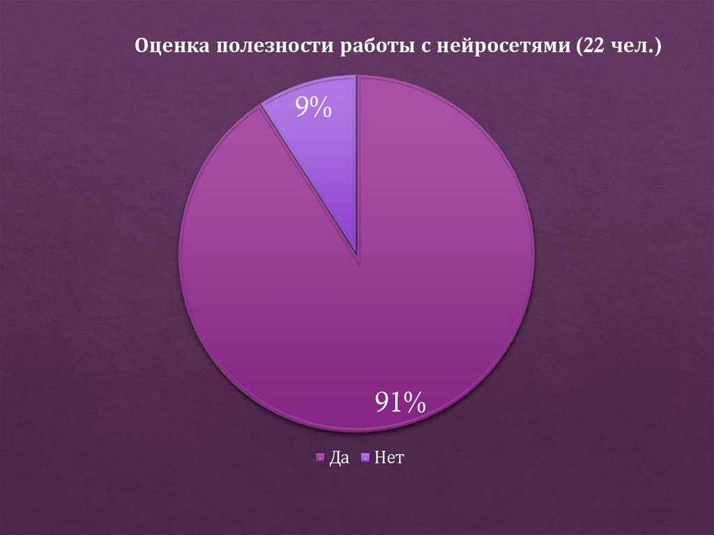Оценка полезности работы с нейросетями (22 чел.)9%
