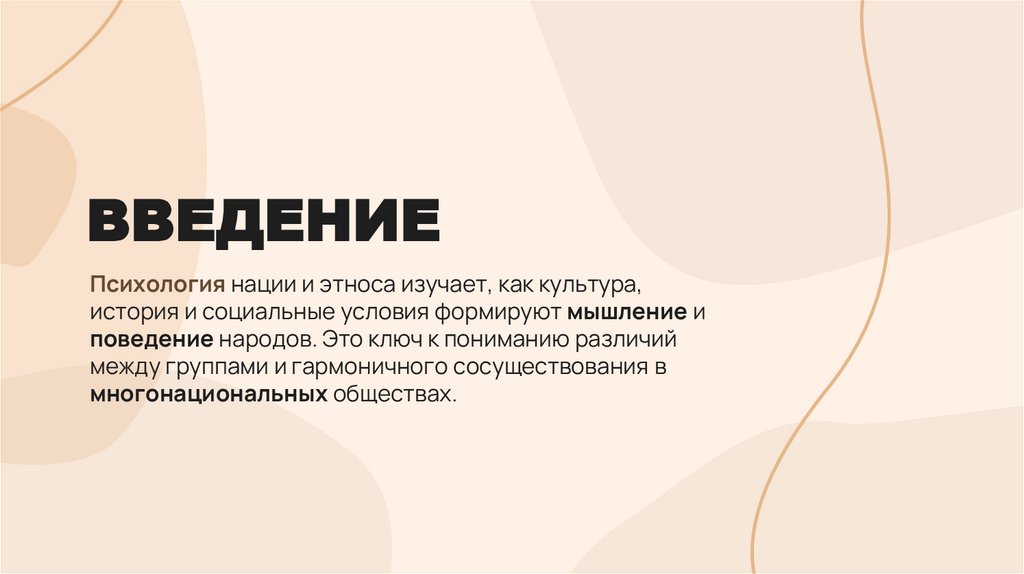 ВВЕДЕНИЕПсихология нации и этноса изучает, как культура,