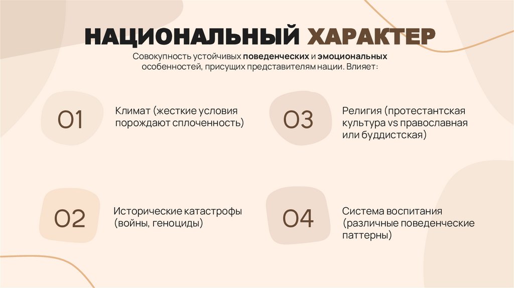 НАЦИОНАЛЬНЫЙ ХАРАКТЕРСовокупность устойчивых поведенческих и эмоциональных