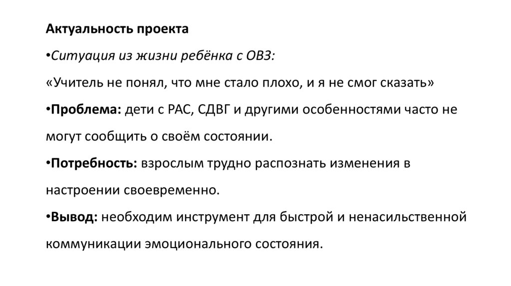 Актуальность проекта•Ситуация из жизни ребёнка с ОВЗ:
