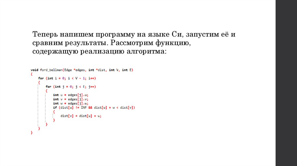 Теперь напишем программу на языке Си, запустим её исравним результаты. Рассмотрим функцию,