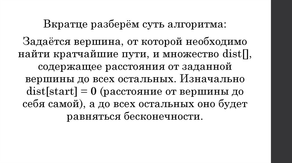 Вкратце разберём суть алгоритма:Задаётся вершина, от которой необходимо