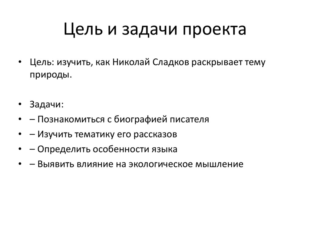 Цель и задачи проекта• Цель: изучить, как Николай Сладков раскрывает тему