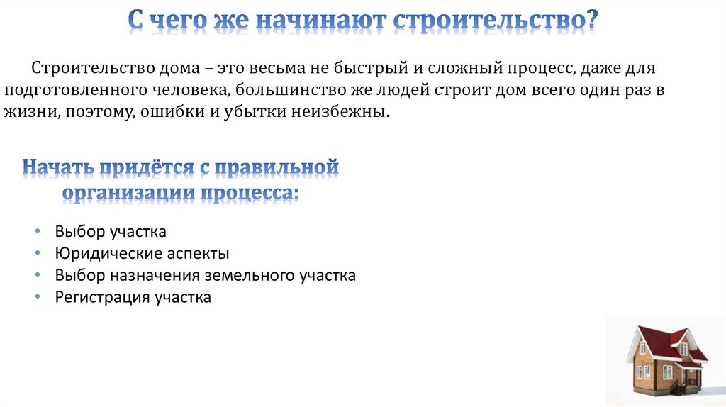 Строительство дома – это весьма не быстрый и сложный процесс, даже дляподготовленного человека, большинство же людей строит дом всего один раз в