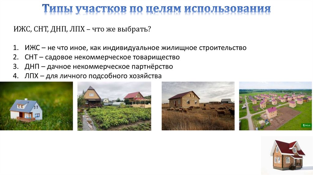 ИЖС, СНТ, ДНП, ЛПХ – что же выбрать?1.