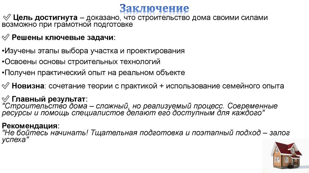 ✅ Цель достигнута – доказано, что строительство дома своими силамивозможно при грамотной подготовке