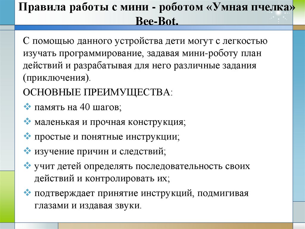 7. Правила работы с мини - роботом «Умная пчелка» Bee-Bot.