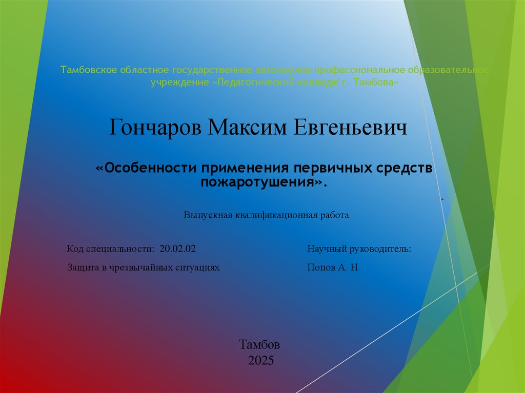 Гончаров Максим Евгеньевич«Особенности применения первичных средств