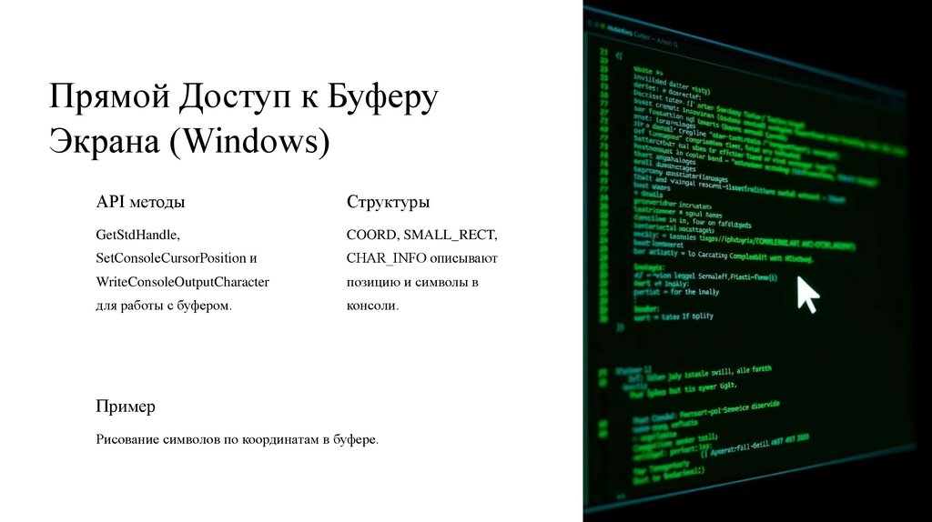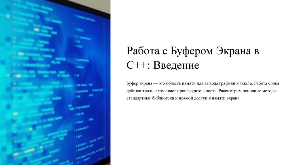 Буфер экрана — это область памяти для вывода графики и текста. Работа с ним