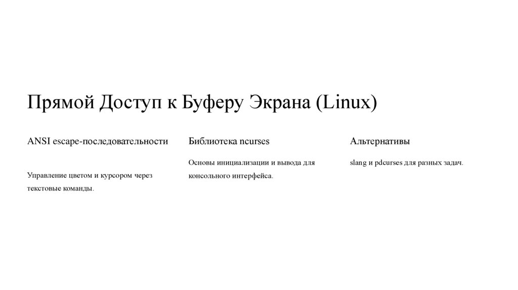 Прямой Доступ к Буферу Экрана (Linux)ANSI escape-последовательности