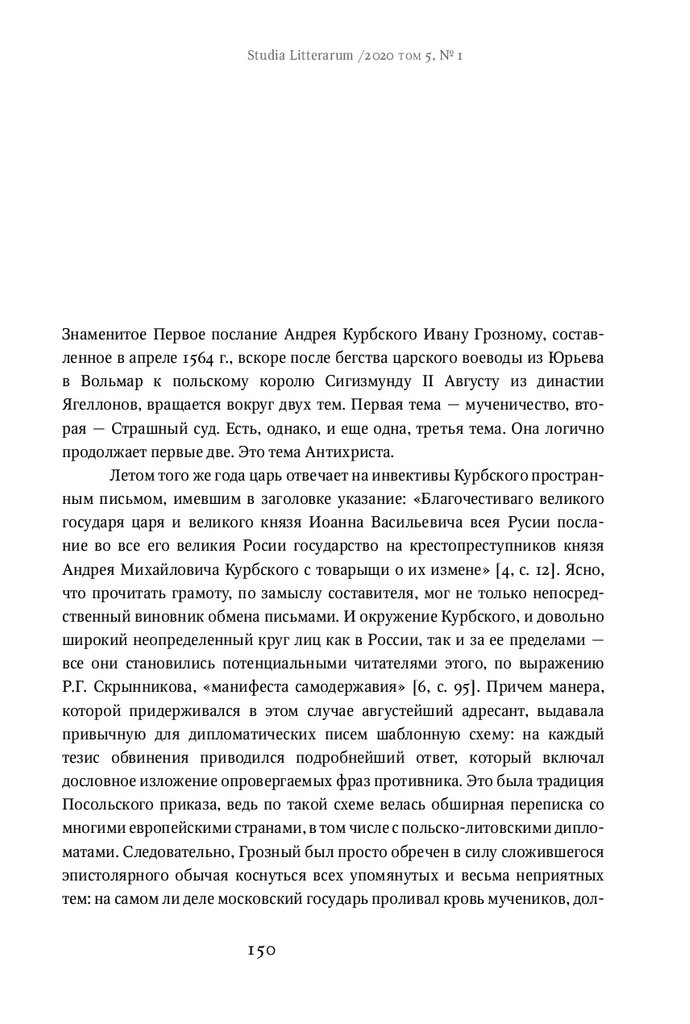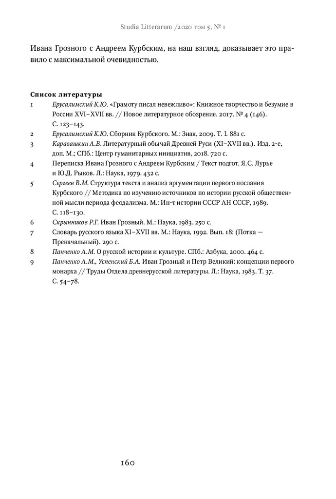 Studia Litterarum /2020 том 5, № 1Ивана Грозного с Андреем Курбским, на наш взгляд, доказывает это правило с максимальной очевидностью.