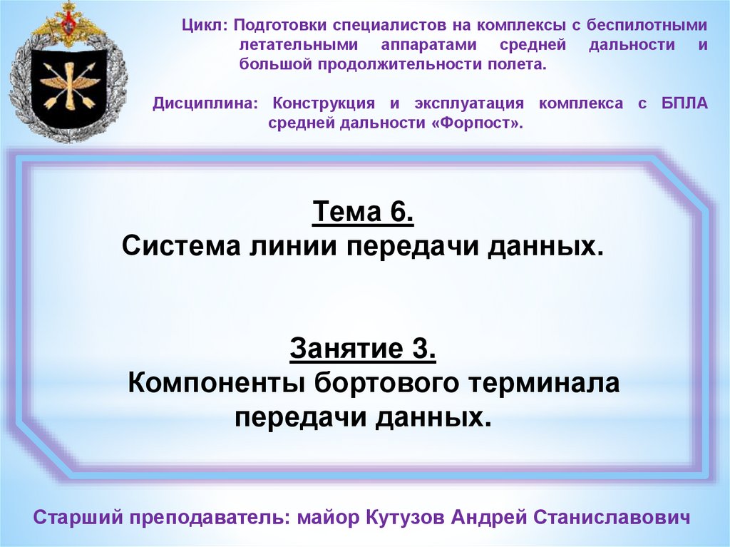 1. Старший преподаватель: майор Кутузов Андрей Станиславович