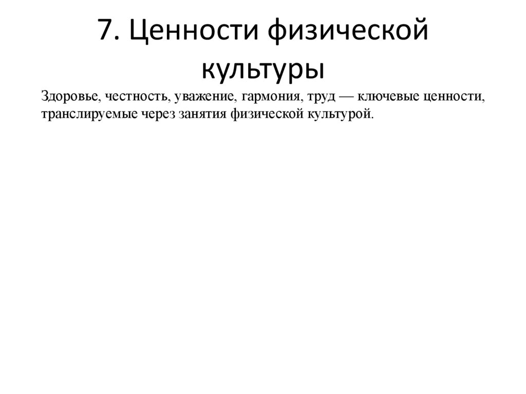 8. Интеграция в образованиеФизическая культура — обязательная дисциплина.