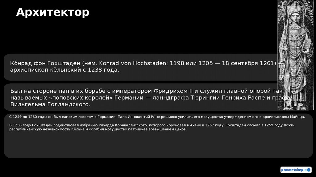 АрхитекторКо́нрад фон Гохштаден (нем. Konrad von Hochstaden; 1198 или 1205 — 18 сентября 1261) —