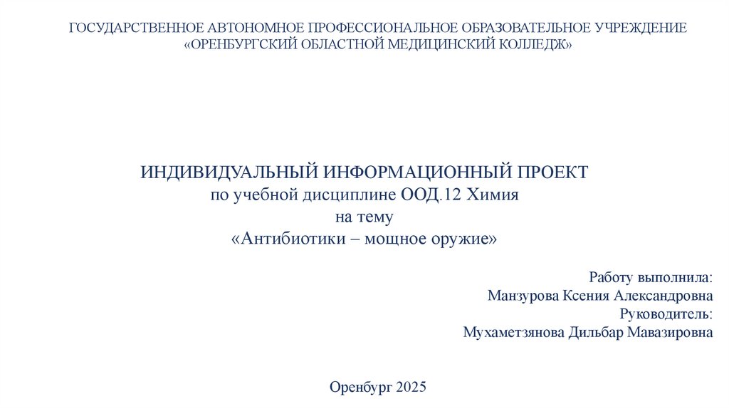 Индивидуальный информационный проект на тему: «Антибиотики – мощное оружие»