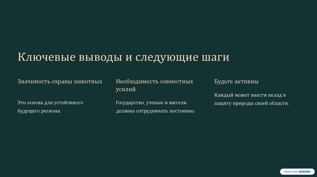 Ключевые выводы и следующие шагиЗначимость охраны животных