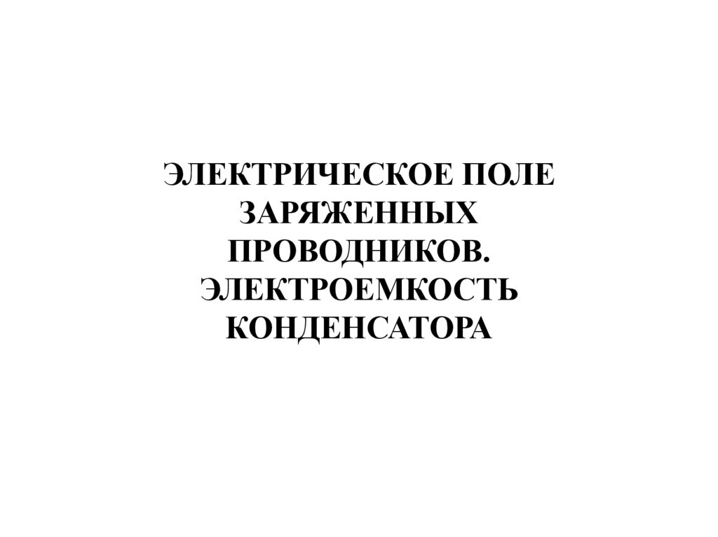 Электрическое поле заряженных проводников. Электроемкость конденсатора