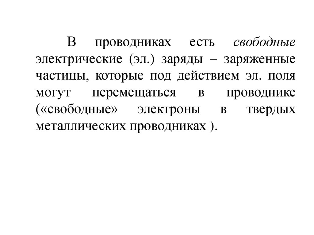 В проводниках есть свободныеэлектрические (эл.) заряды заряженные