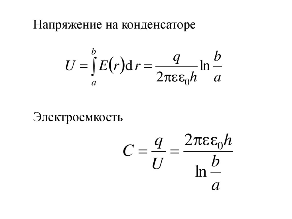 9. Емкости плоского, цилиндрического и сферического конденсаторов