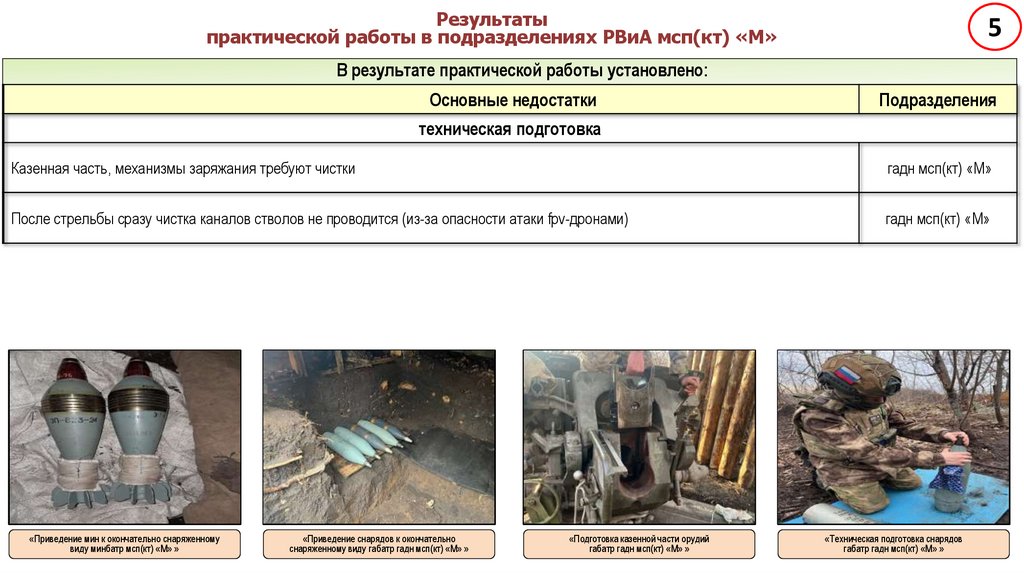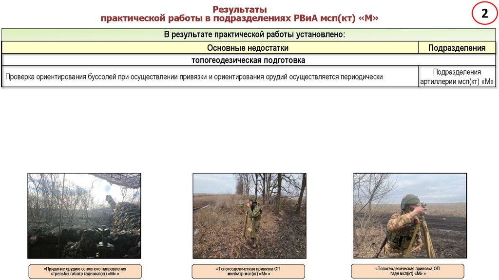 Результаты практической работы в подразделениях РВиА мсп(кт) «М»