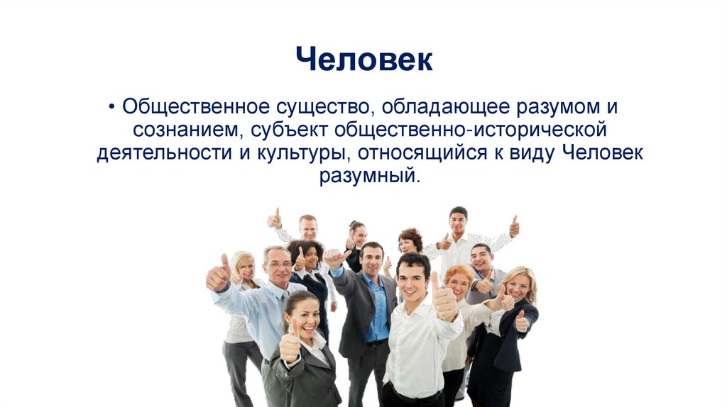 • Общественное существо, обладающее разумом исознанием, субъект общественно-исторической