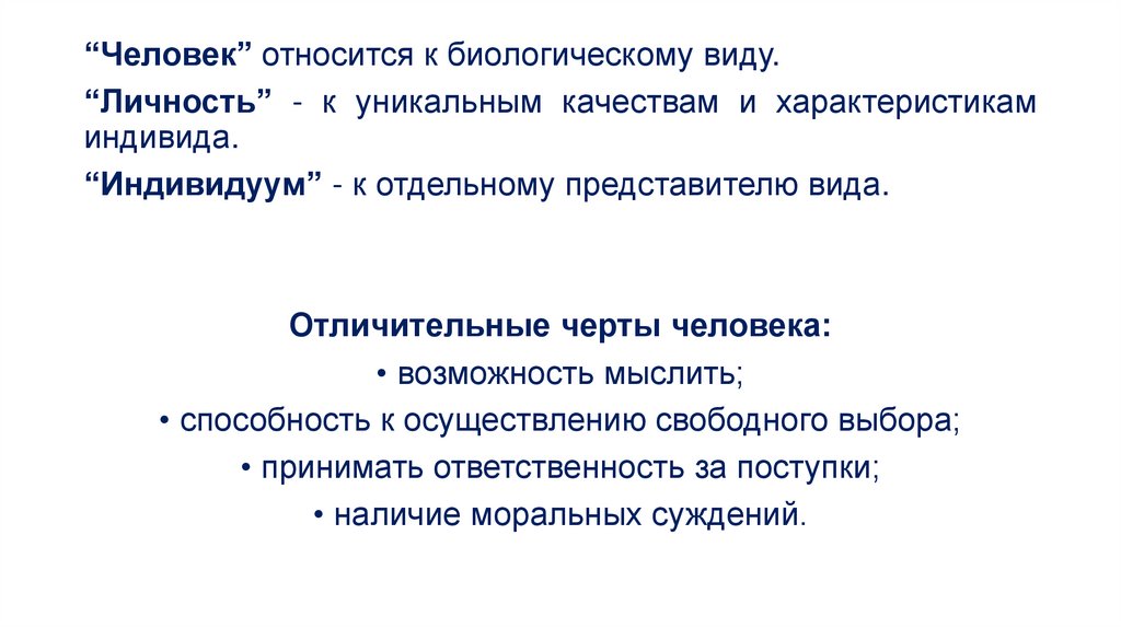 “Человек” относится к биологическому виду.“Личность” - к уникальным качествам и характеристикам