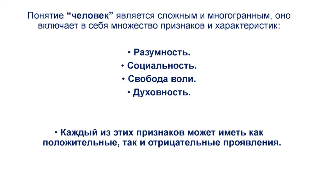 Понятие “человек” является сложным и многогранным, оновключает в себя множество признаков и характеристик: