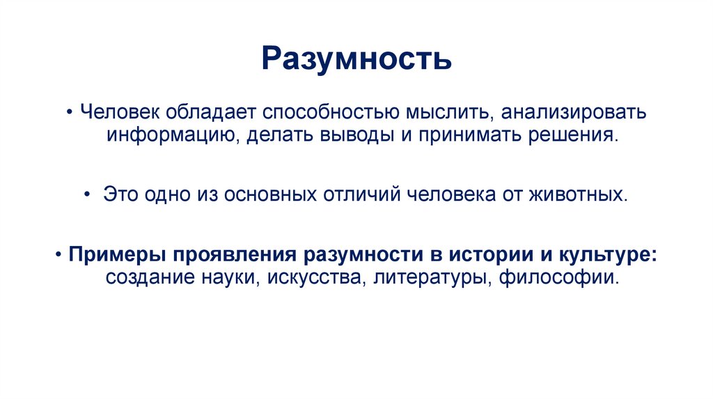 • Человек обладает способностью мыслить, анализироватьинформацию, делать выводы и принимать решения.