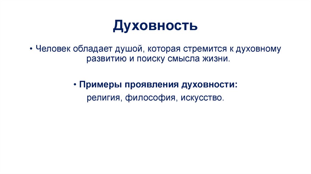 • Человек обладает душой, которая стремится к духовномуразвитию и поиску смысла жизни.