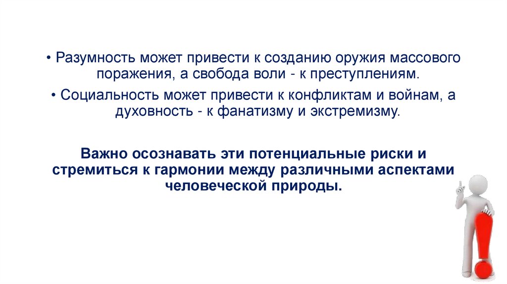 • Разумность может привести к созданию оружия массовогопоражения, а свобода воли - к преступлениям.