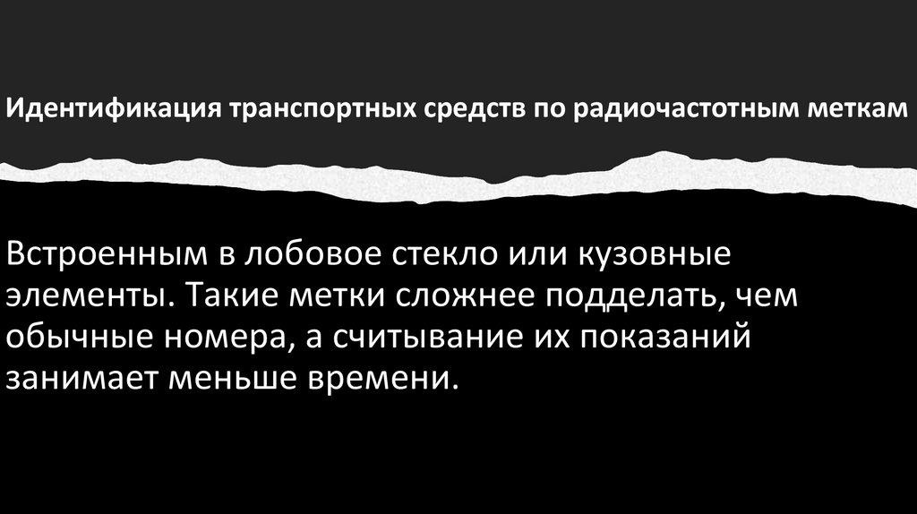 Идентификация транспортных средств по радиочастотным меткамВстроенным в лобовое стекло или кузовные