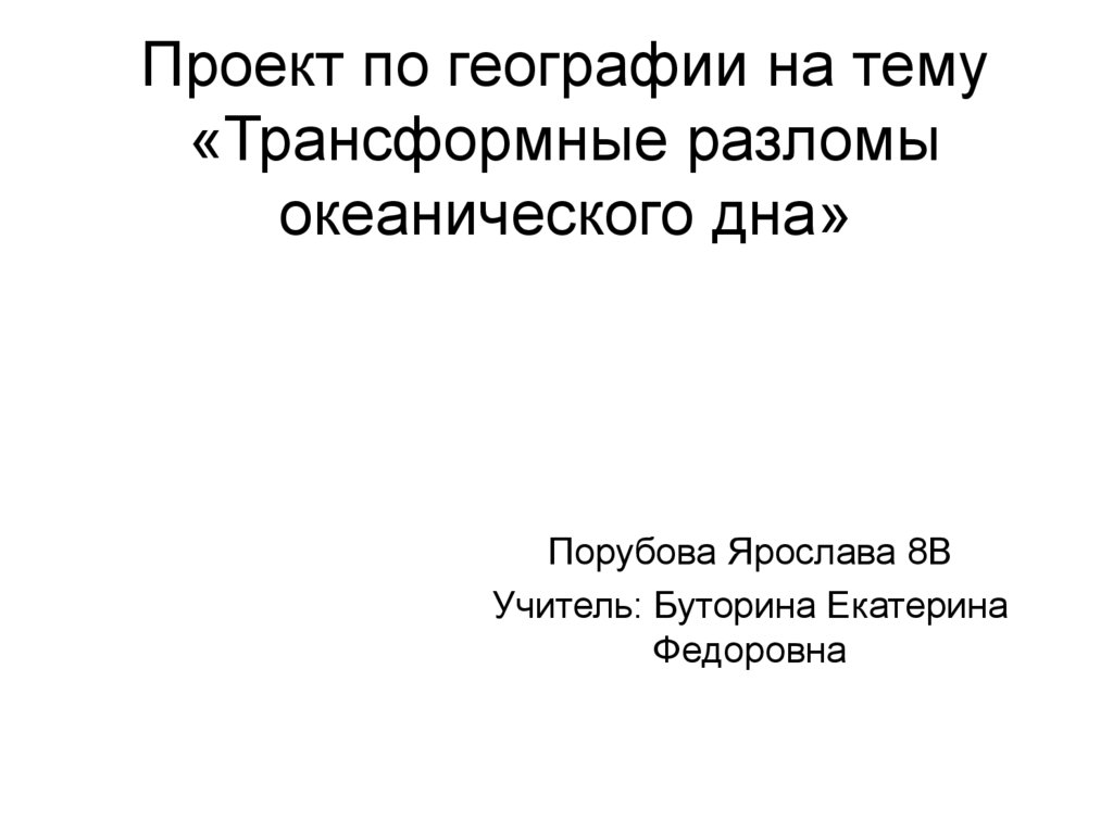 1. Проект по географии на тему «Трансформные разломы океанического дна»