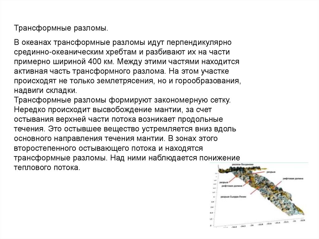 Трансформные разломы.В океанах трансформные разломы идут перпендикулярно