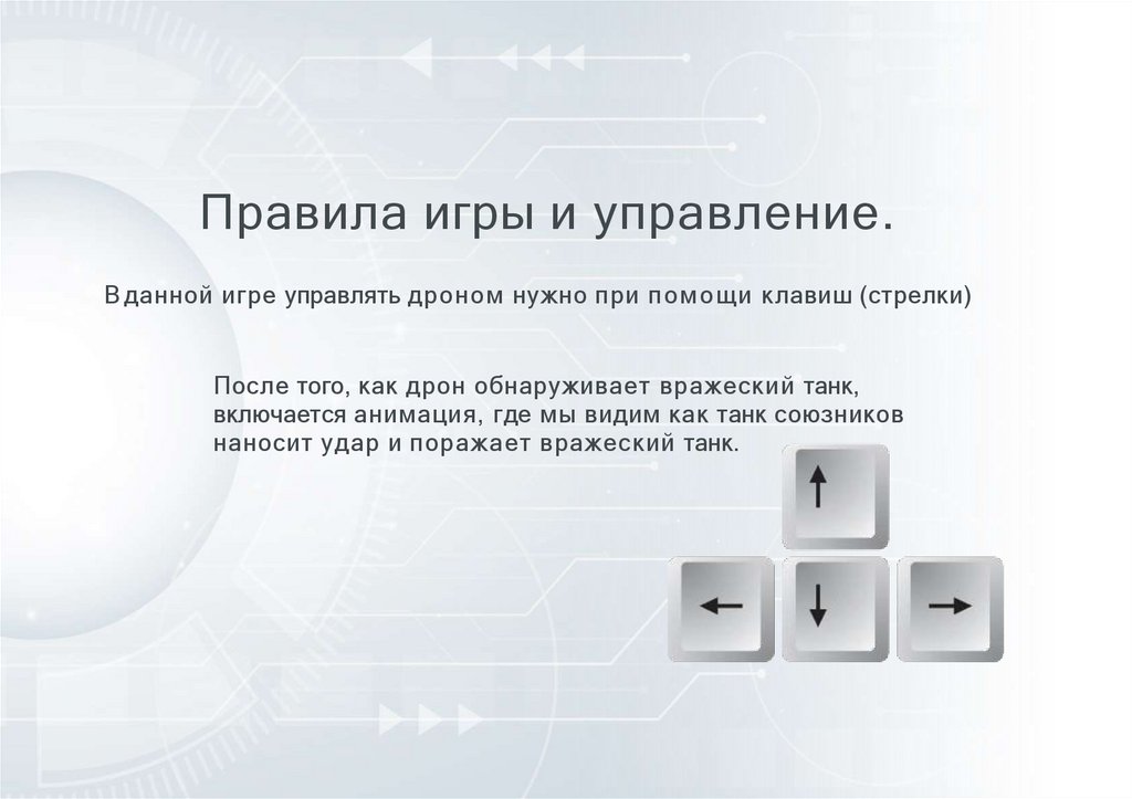 Правила игры и управление.В данной игре управлять дроном нужно при п о м о щ и клавиш (стрелки)