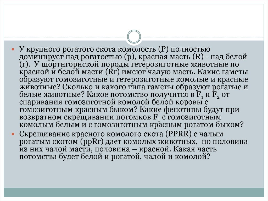 рогатым скотом (ppRr) дает комолых животных, но половина