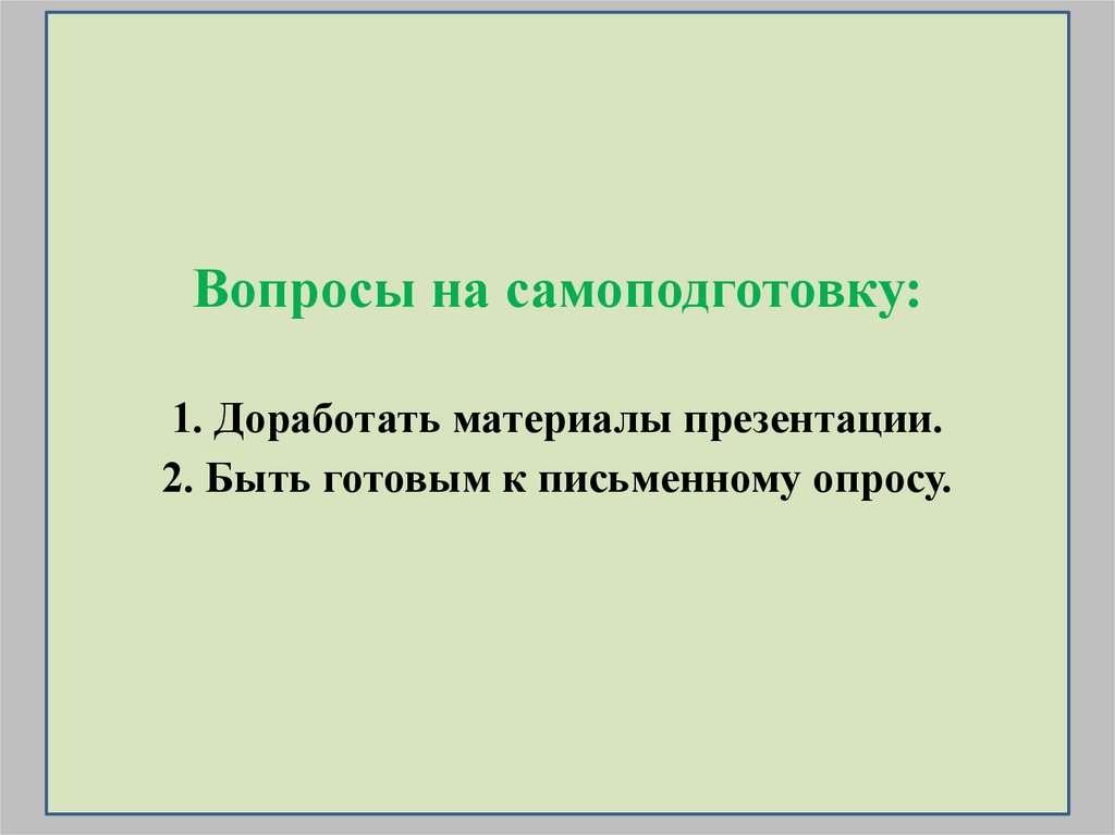 Вопросы на самоподготовку:1. Доработать материалы презентации.