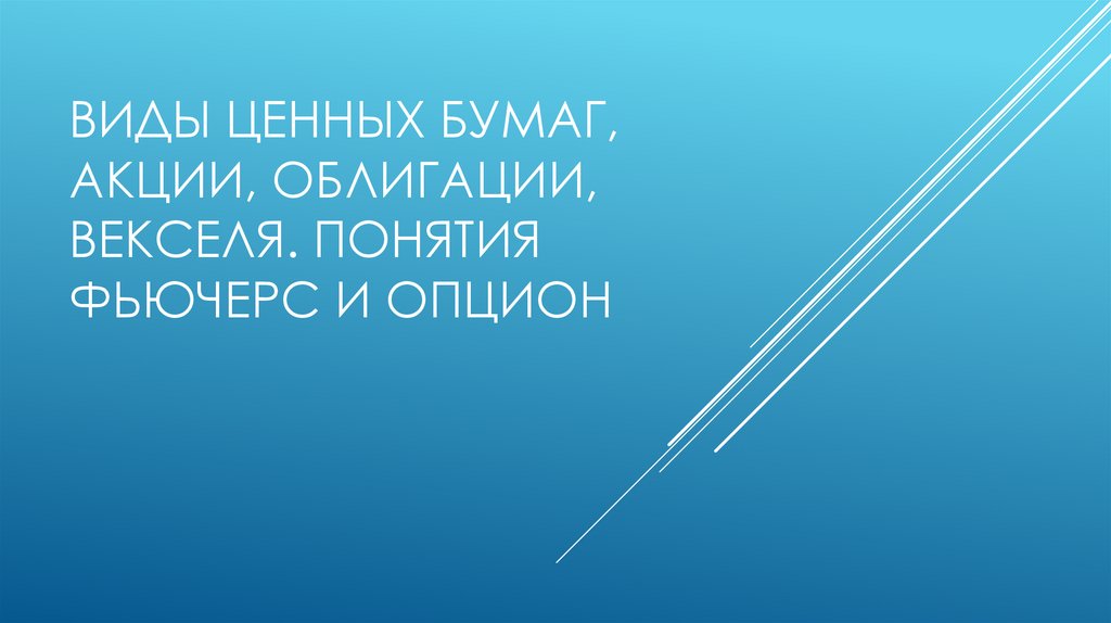 Виды ценных бумаг, акции, облигации, векселя. Понятия фьючерс и опцион