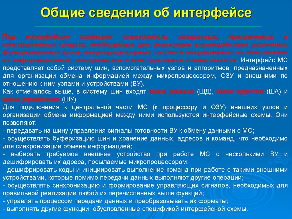 - выполнять другие функции, обусловленные спецификой интерфейсной схемы.