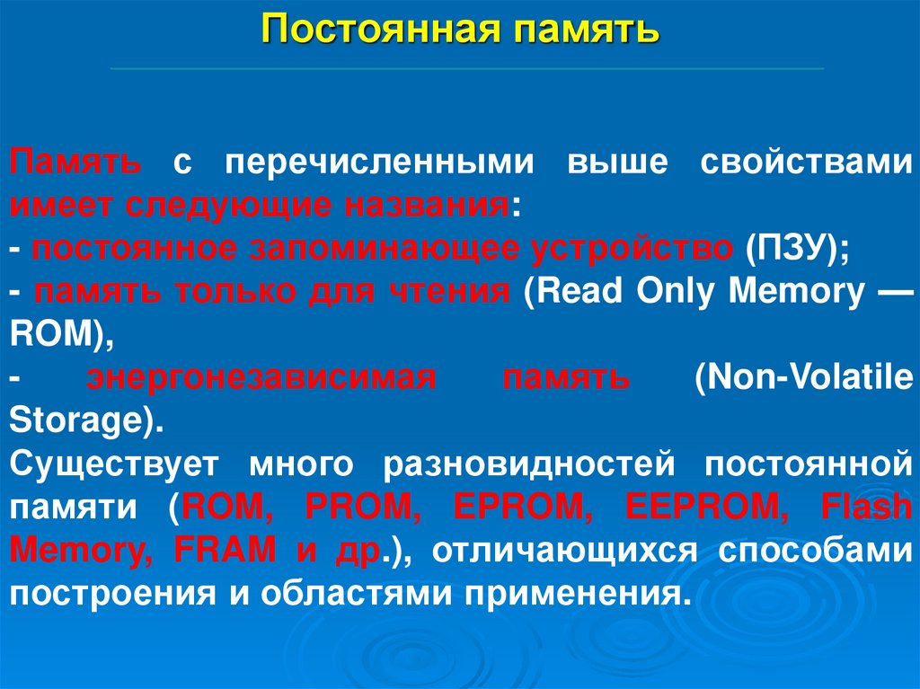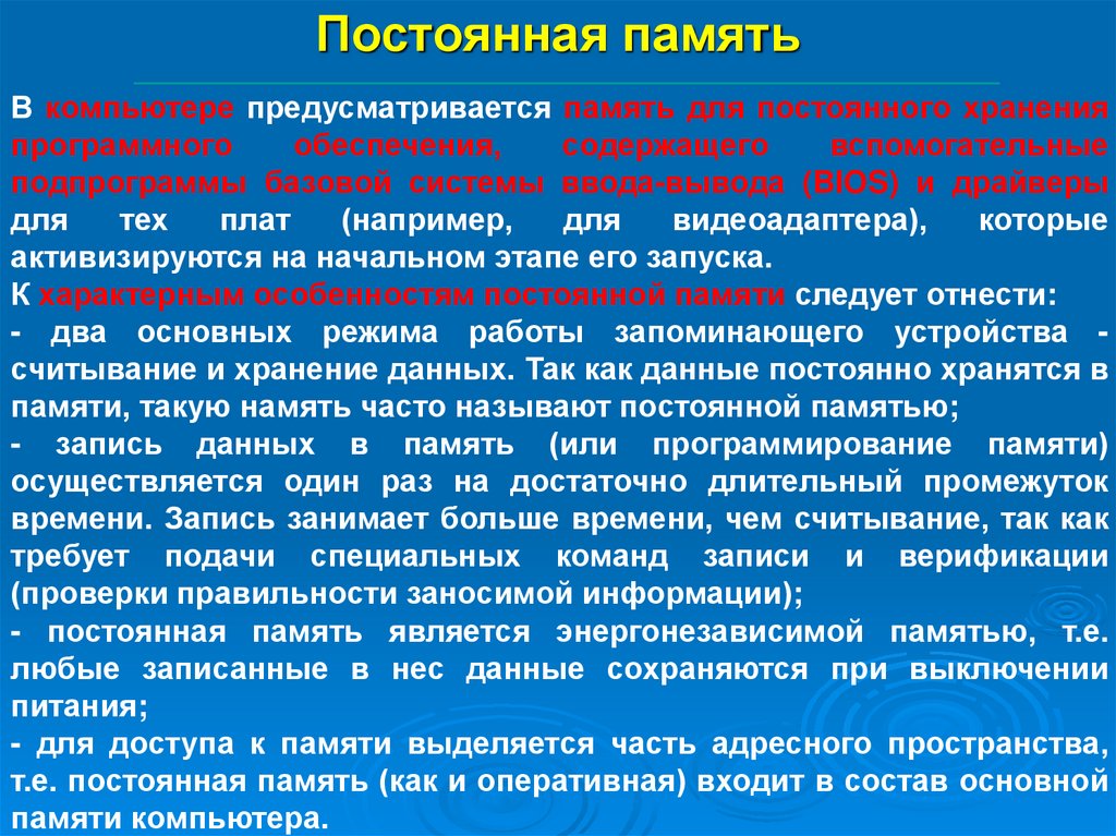 памяти, такую намять часто называют постоянной памятью;