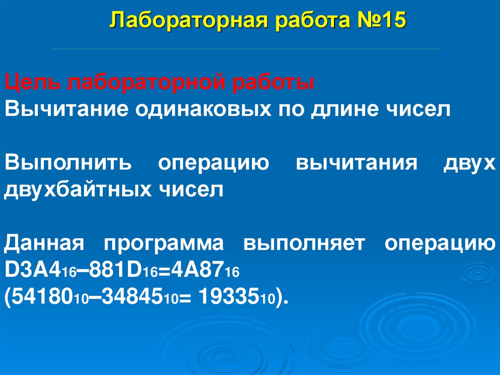 Лабораторная работа №15: "Вычитание одинаковых по длине чисел" (Лекция №10)