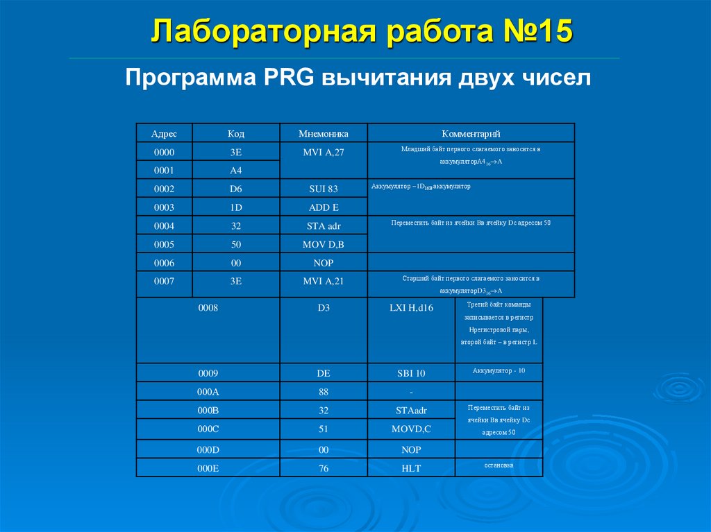 Лабораторная работа №15Программа PRG вычитания двух чисел